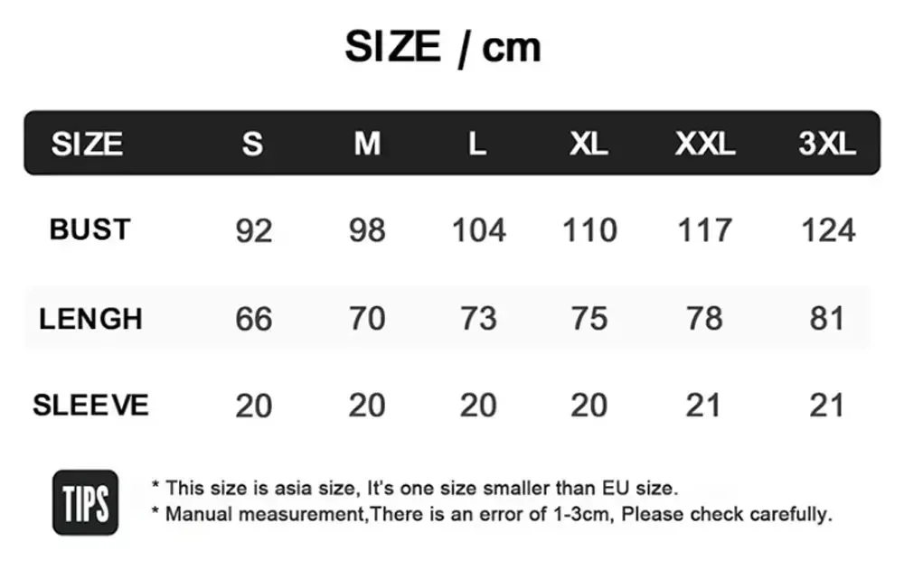 • The clothing sizes are based on manual measurements and may have a margin of error of ±1 to 3 centimeters.